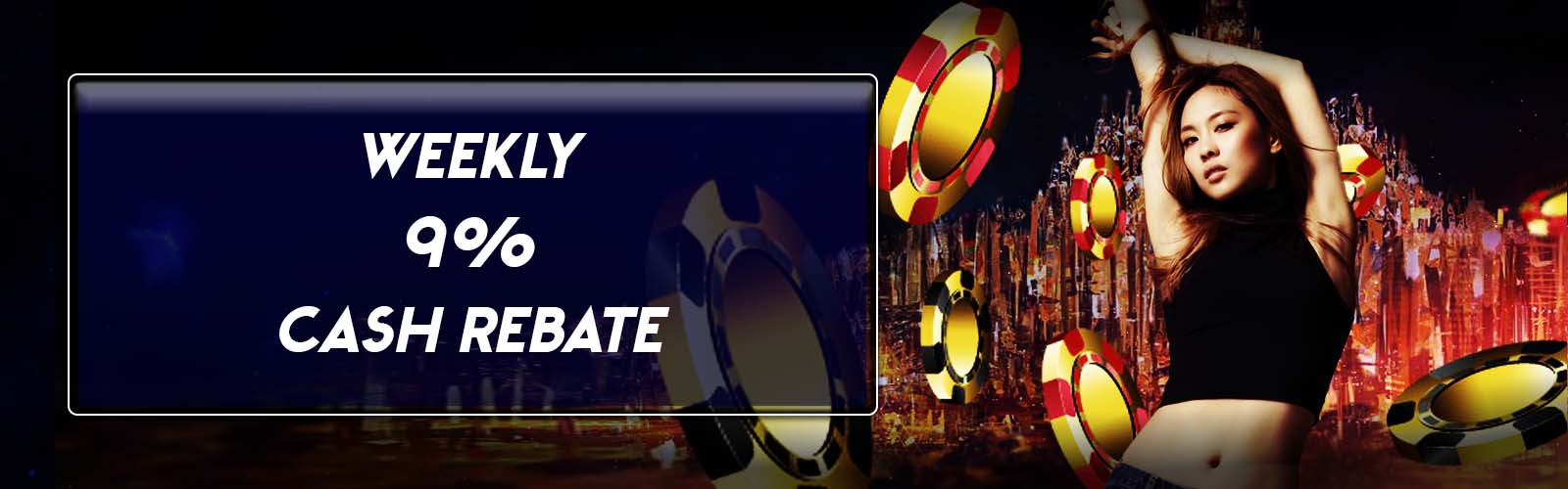- Player will received 9% Rebate based on their total weekly Net Loss Amount.